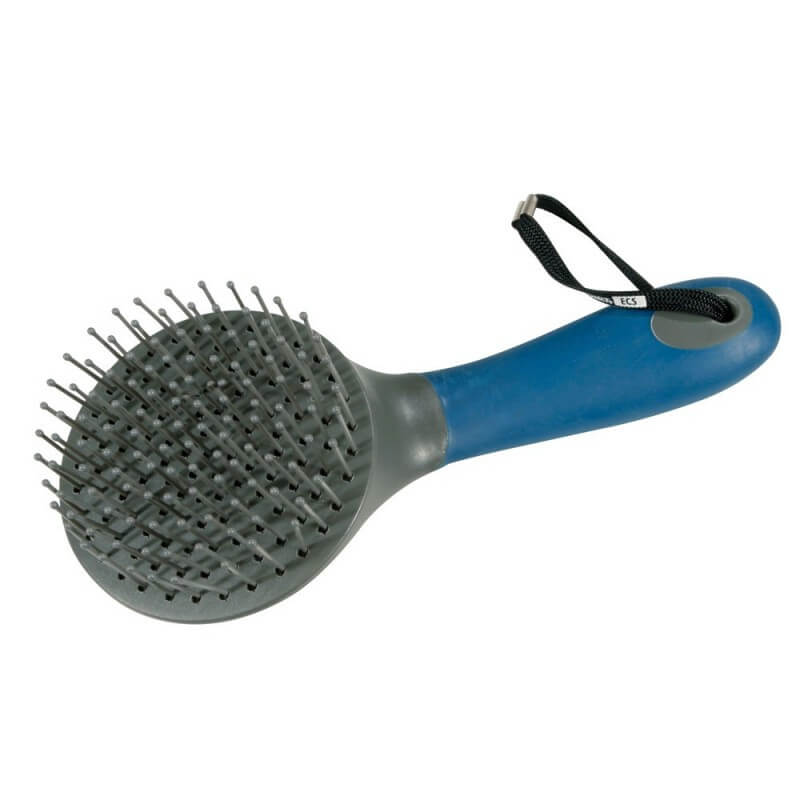 Dit is eigenlijk een borstel zoals wij mensen die ook hebben om onze haren te borstelen. Bij het paard borstel je hiermee de manen (de lange haren bij zijn hoofd) en zijn staart.